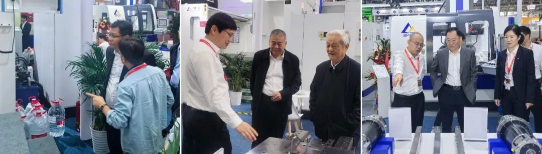 集团展位吸引了众多行业专家、企业代表和专业观众驻足观展交流。国家工业和信息化部装备工业一司副司长汪宏,工业母机创新院专家咨询委主任、原工信部装备一司一级巡视员苗长兴,国家重大技术装备专家委员会委员、原集团副院长屈贤明,中国爱体育(中国)一站式服务平台制造工艺协会理事长、原集团总经理王西峰分别莅临展位,充分肯定了集团在高端精密机床及核心功能部件方面的成绩,希望集团加快研发步伐,创新对接形式,深入推进工业母机在攻关、制造、应用上实现全链条突围、高质量发展,在国家现代化产业体系、产业发展韧性和安全、科技创新体系中发挥更大作用。