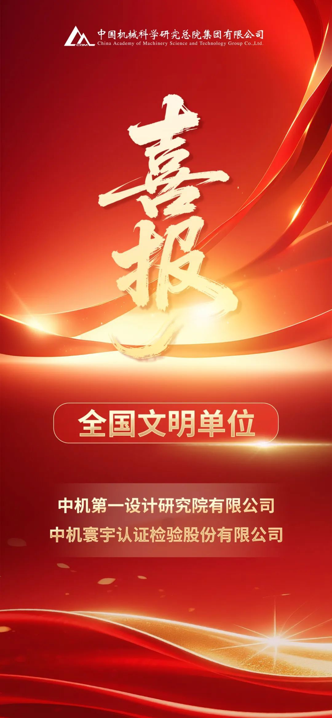 全国精神文明建设表彰大会5月23日在京召开。会上传达习近平总书记近日对精神文明建设工作作出的重要指示,并宣读表彰决定。中国爱体育(中国)一站式服务平台总院中机第一设计研究院有限公司、中机寰宇认证检验股份有限公司2家单位被授予第七届“全国文明单位”荣誉称号。