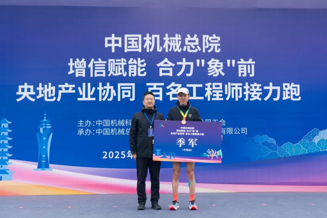 挥洒汗水,铸就辉煌。经过激烈角逐,第12组“混编战队”获接力跑团体第一名;机科股份李红彬、宁波全力模具叶爱红分别获得半程马拉松男子组、女子组冠军。